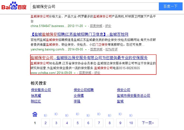 鹽城保安公司搜索引擎進第一頁
