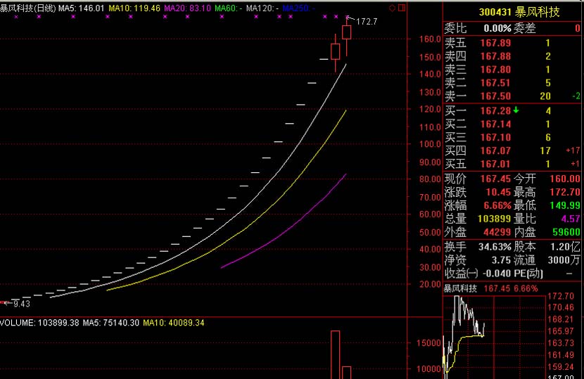 發(fā)行價(jià)7.14元的暴風(fēng)科技,上市之后,居然連拉29個(gè)漲停板,截止近日最高摸至172.7元,成為中國(guó)股市2015年當(dāng)之無(wú)愧的妖股之一。