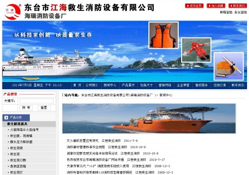 海瑞消防設(shè)備廠的網(wǎng)站上居然出現(xiàn) 江恒救生消防字樣